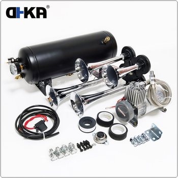 12V/24V 4 Pijp Trompet En 1.5 Gal 6l Grote Usa Luchtdruk Tank Kit Luchtcompressor Hoorn Voor Vrachtwagenboot Trein As191 + As034