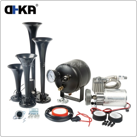 12 فولت 4 أنابيب البوق و gal 6L كبير الولايات المتحدة الأمريكية طقم خزان ضغط الهواء القرن ضاغط الهواء للشاحنة قارب قطار AS191 + AS034AB