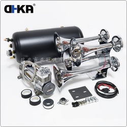 ทรัมเป็ต4ท่อ12V/24V AS034B แตรลมแก๊สรถมอเตอร์ไซด์รถบรรทุกเหล็กโครเมี่ยม